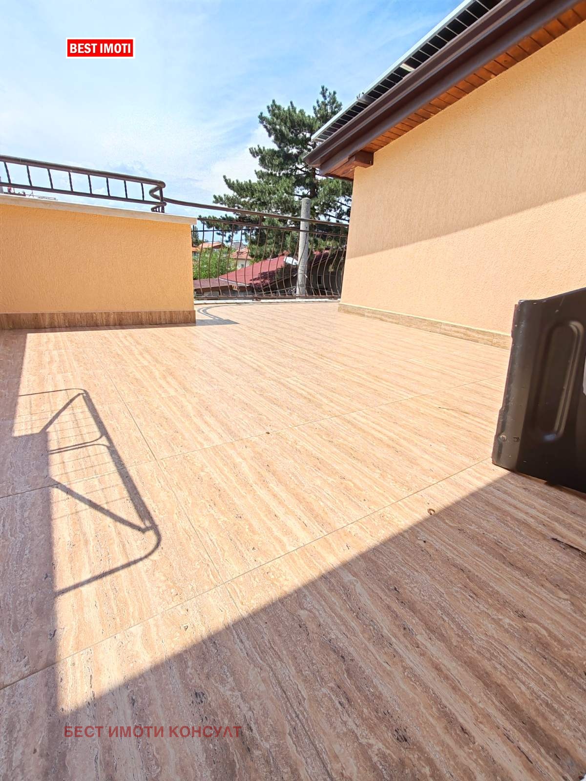 Отоплението е решено с котле на пелети и има изградена инсталация с водна риза и поставени радиатори; Също така има и по два климатика на етаж; Соларни панели на покрива; Външна изолация на цялата къща. Видеонаблюдение.