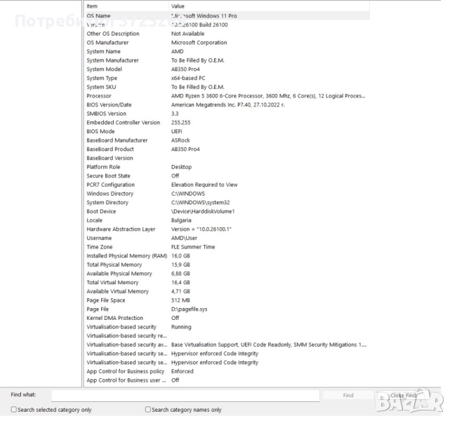 - ОС: Microsoft Windows 11 Pro – активиран с дигитален лиценз