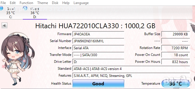 - Дисково пространство: SSD диск C: 480 GB (Kingston) – за светкавично стартиране и работа; втори дял HDD диск D: 1 TB (Hitachi) – за съхранение на големи файлове. Общо около 1.5 ТВ