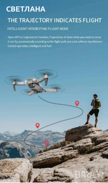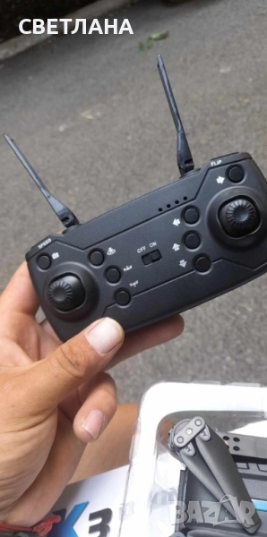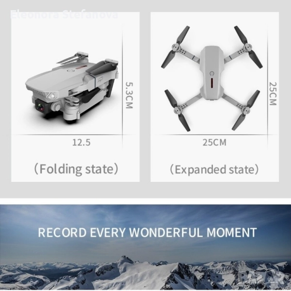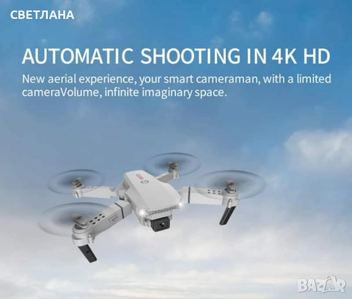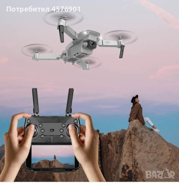 Дрон, 4k HD двойна камера/ Технически характеристики: Тип продукт: Дрон; Маневреност: Въздух; Захранване: Акумулатор; Състояние: Сглобен; Материал: Пластмаса; Цвят: Сив; Операционна система: Android, iOS; Свързаност: Wi-Fi; Тип акумулатор: Йонно - литиева батерия, 3.7V 540 mAh; Максимална дистанция: 150 м; Автономия при полет: 12 мин; Видео резолюция: Full HD, 4К; Поддържащи устройства: Смартфон; Работна честота: 2.4 GHz; Дистанционно: Да; Батерия на дистанционното: 3х АА, 1.5V; Функции: Автоматично кацане, Автоматично издигане, Сгъваем; Лесен за съхранение; Лесен за управление; Чиста и ясна картина със страхотни изображения; Размери: Разгънат: 25х25 см, Сгън: 12.5х 8.1 см.