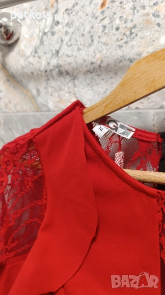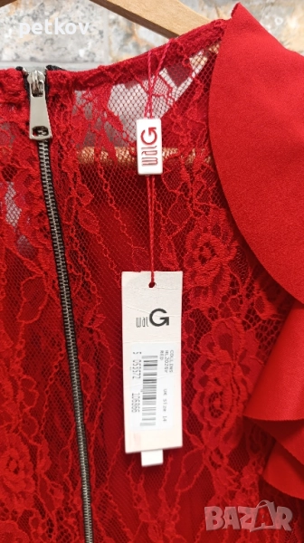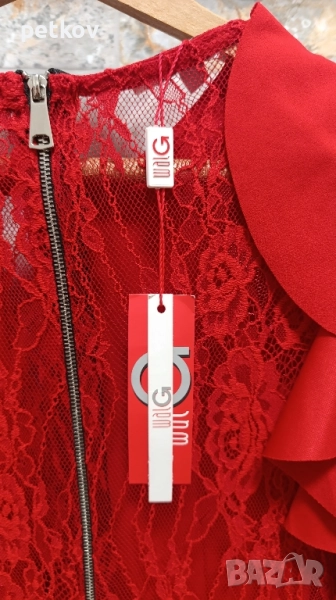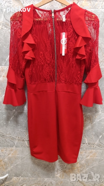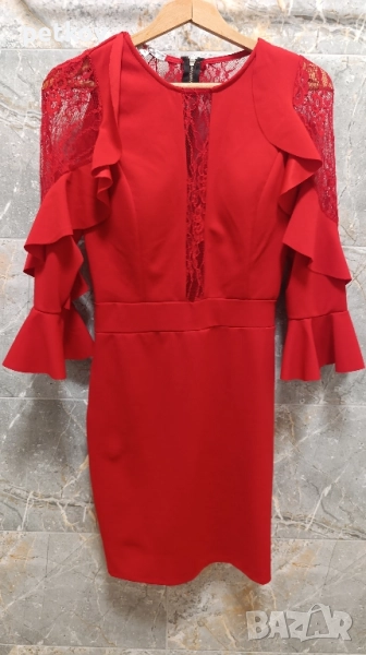 Червена еластична рокля WalG, размер UK 14, между S-M, цена 40 лв. С етикет. Дължина на ръкава от рамото 51 см, разстояние между рамената 30 см, разстояние между мишници 30 см, талия 36 см, разстояние от деколтето до колана 32 см, в най-широката част при бедрата 48 см, дължина 92 см, цип 38 см, без цепка.