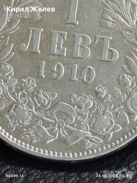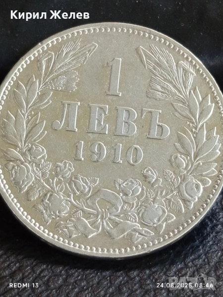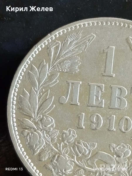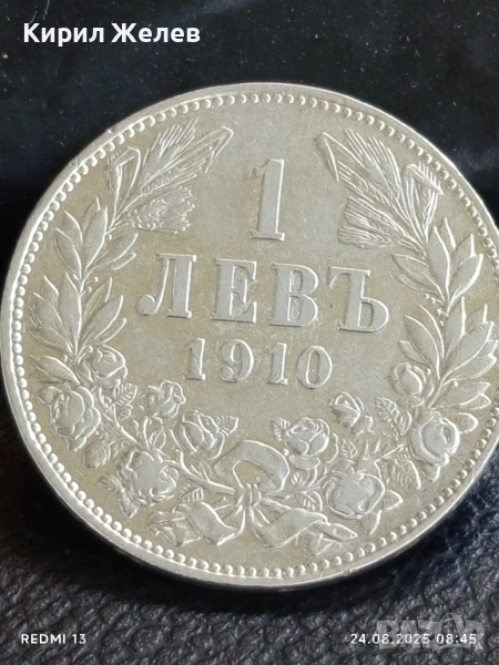 Сребърна монета 1 лев 1910г. Княжество България Княз Фердинанд първи за КОЛЕКЦИЯ 74171