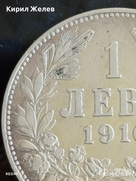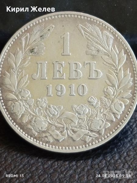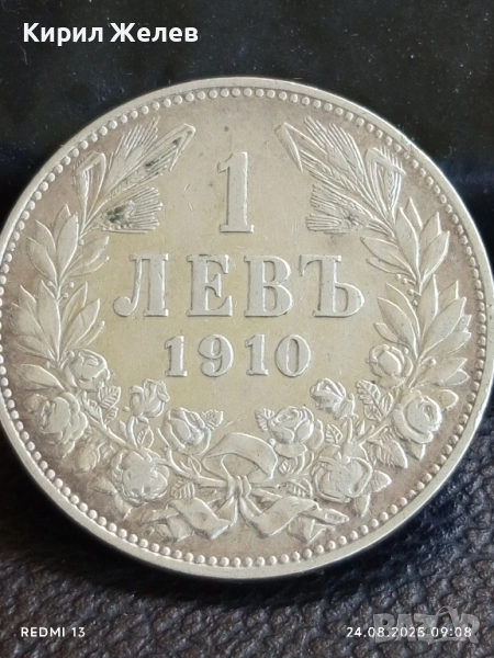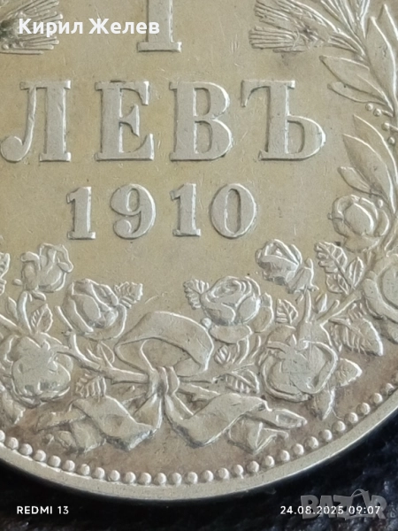 Сребърна монета 1 лев 1910г. Княжество България Княз Фердинанд първи за КОЛЕКЦИЯ 42326