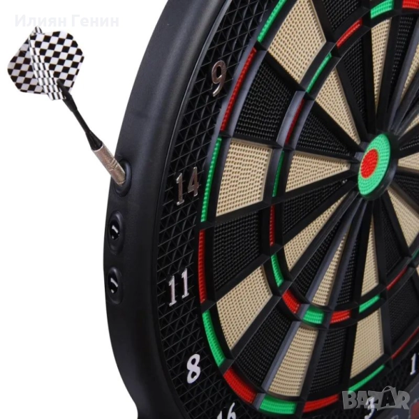 ДИГИТАЛНА ИГРА НА ДАРТ: Общо четири LED дисплея ясно показват резултатите. Има и интерактивни звукови ефекти и гласов изход (силата на звука е регулируема).