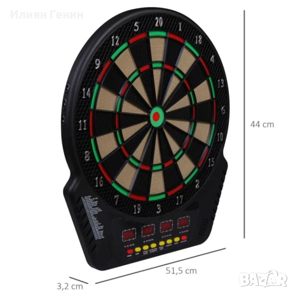 HOMCOM Електронен комплект за дартс с LED дисплей и автоматично отчитане на резултатите Звукови ефекти 6 дартс 24 глави за дартс 27 игри и 243 опции за удар за 16 играчи 44 x 51,5 x 3,2 см - 100.00лв.