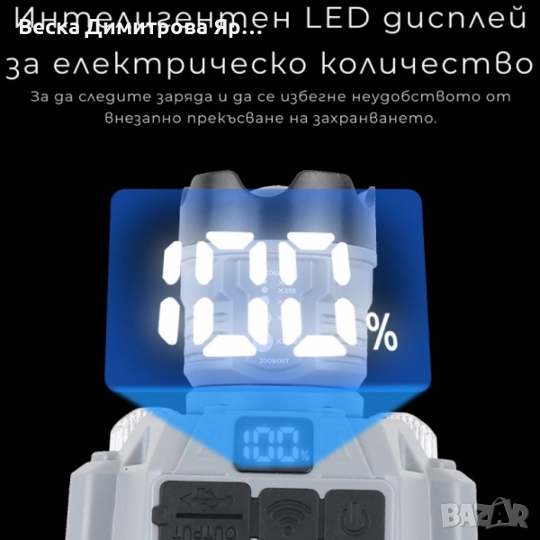 Захранване: Вградена презареждаща се батерия, зареждане чрез Type-C/USB.