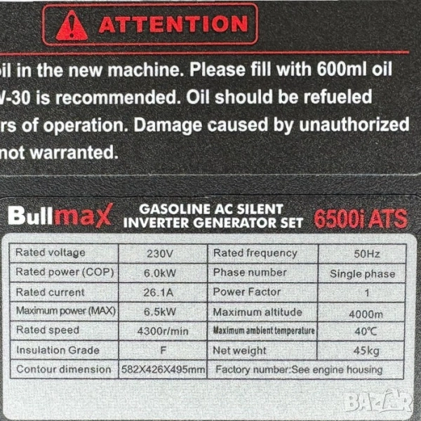 6,5 kW Инверторен обезшумен генератор за ток дистанционно, ATS табло → Обява 51470318