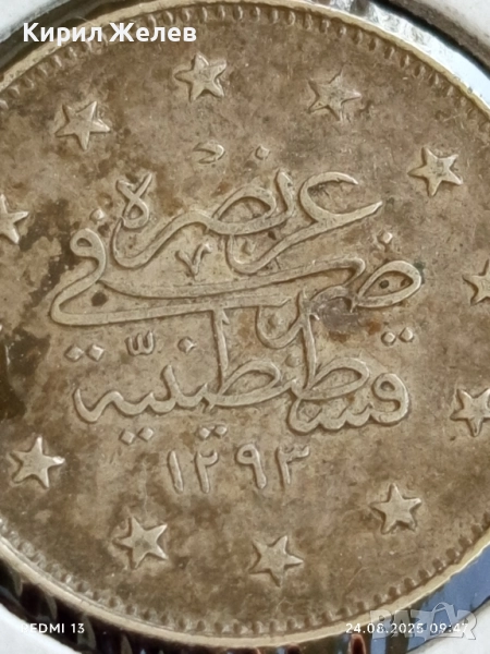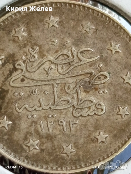 Сребърна монета 2 куруша 1293/г.28 Абдул Хамид втори Османска империя 38754