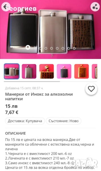 9.Манерки за алкохолни напитки -€7 за 1 бр.