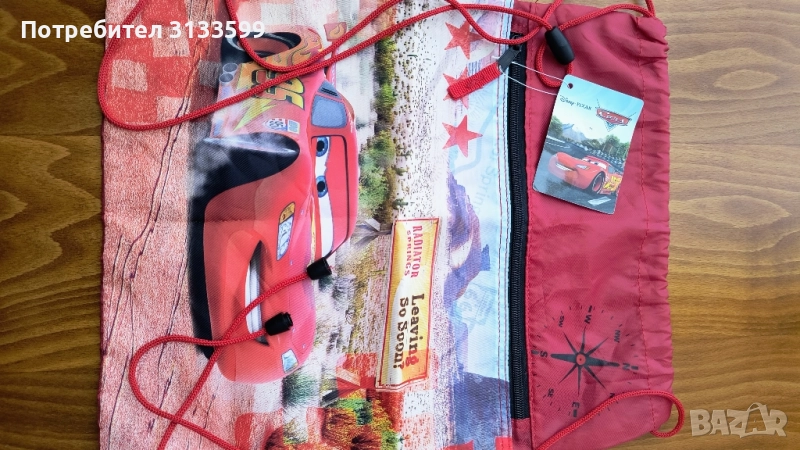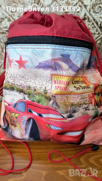 - Мешка "Светкавицата Маккуин"- продукт на Cars Disney за момче. Подходяща за училище, спорт, разходка, плаж. Размери: 34 /41 см. С голям джоб отпред, затварящ се с цип. ЦЕНА: 8 лв.