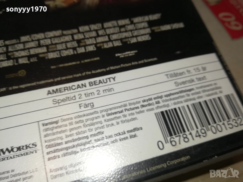 AMERICAN BEAUTY-ORIGINAL VHS VIDEO TAPE 2408251307 → Обява 51472116