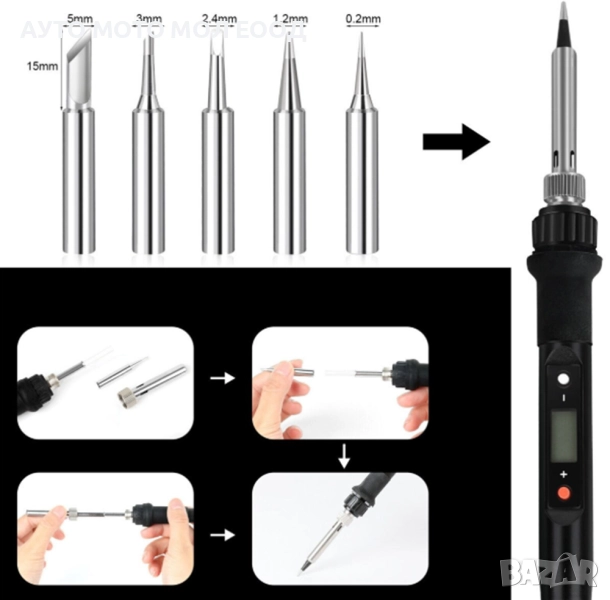 5 х различни накрайника за поялник.