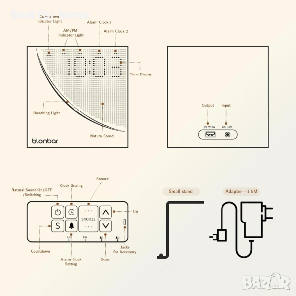 ДВОЙНА АЛАРМА + ОТЛАГАНЕ: Лампата има ДВОЙЕН будилник. Има и 5 мелодии за звънене, от които можете да избирате. В режим Аларма 2 има функция за светлинно събуждане WAKE UP LIGHT. Натиснете кратко бутона за отлагане веднъж, за да отложите будилника за 10 минути. Позволява ви да спите спокойно, без да се притеснявате, че ще закъснеете. Натиснете и задръжте бутона за отлагане, за да изключите алармата. Алармата ще се включи отново на следващия ден в зададения час.