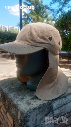 Мъжка шапка с кърпа отзад, подходяща за спорт, риболов, планински преходи и работа на открито. Размер 58 см, който се регулира отзад чрез шнур със стопер. Шапката - Кърпа е с козирка. Изработена е от мека памучна материя. Изключително удобно предложение за активни мъже.