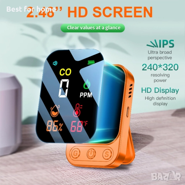 Преносим детектор за въглероден оксид със сензор за температура и влажност [3 в 1]