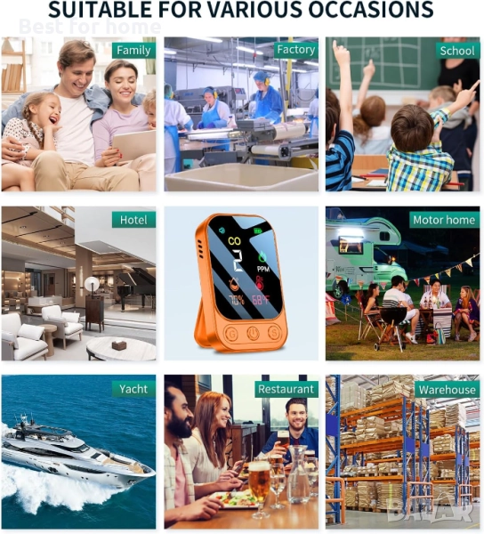 【Преносим CO детектор】 Нашите 3 в 1 детектори се предлагат с връзка за закрепване и дизайн със стойка и отвор за винт. Можем да ги окачим, да ги закрепим на стена или да ги държим изправени навсякъде, идеални за дейности на открито и закрито, къмпинг палатки, лодки, самолети, отопление с печка, кемпери, хотели, кухни, спални, холове и други затворени пространства.