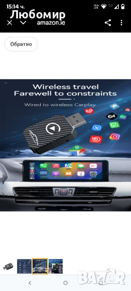 CarPlay безжичен адаптер, съвместим с автомобили от 2017 г. и iPhone iOS 10+