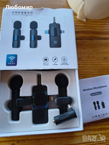 3 в 1 безжичен лавалиер микрофон с приемник. Комплект от 2 микрофона, 3.5 мм кръгъл жак, автоматично шумопотискане, предаване на живо за мобилен телефон, лаптоп, Android, iPad