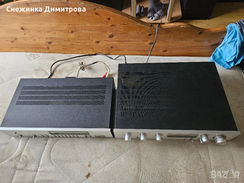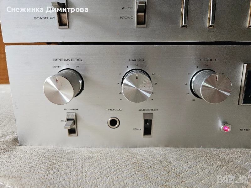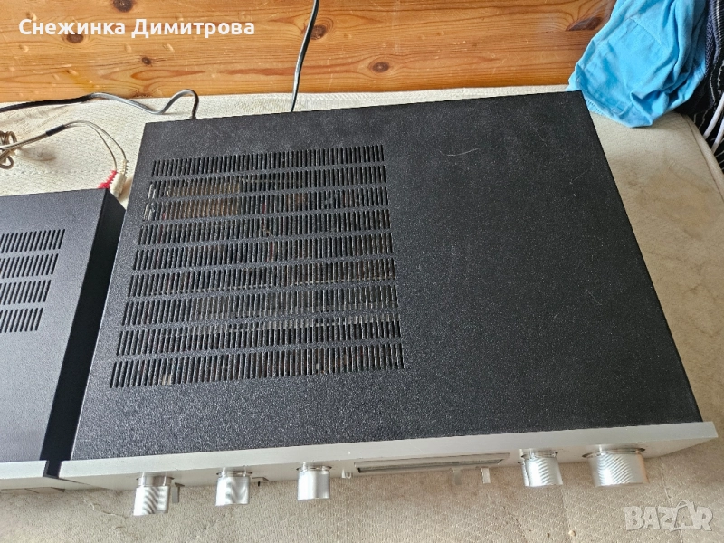 И двете са минали профилактика, и работят отлично. С много добър външен вид и отлично функциониращ. Разполага с красива синя флуорисцентна индикация за нивото на звука. Изходна мощност 2x50w/6ohm и 2x40w/8ohm. Произведен в Япония.