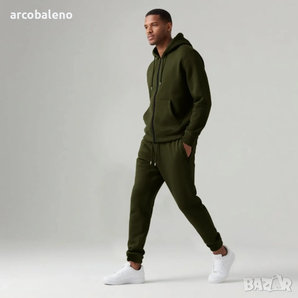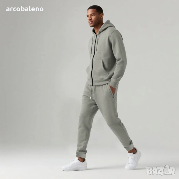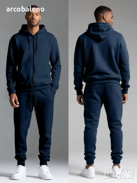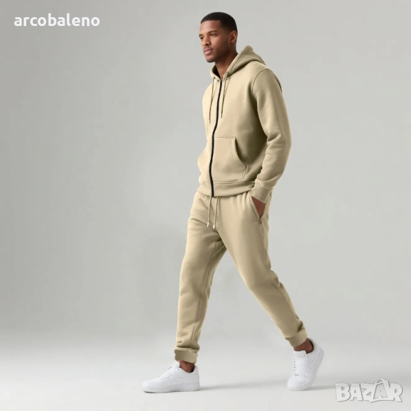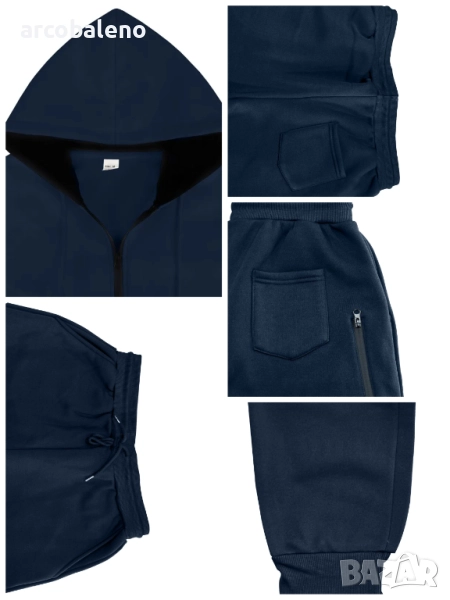 Мъжки есенно-зимен комплект от две части с качулка и дълъг ръкав с подплата от полар, 6цвята