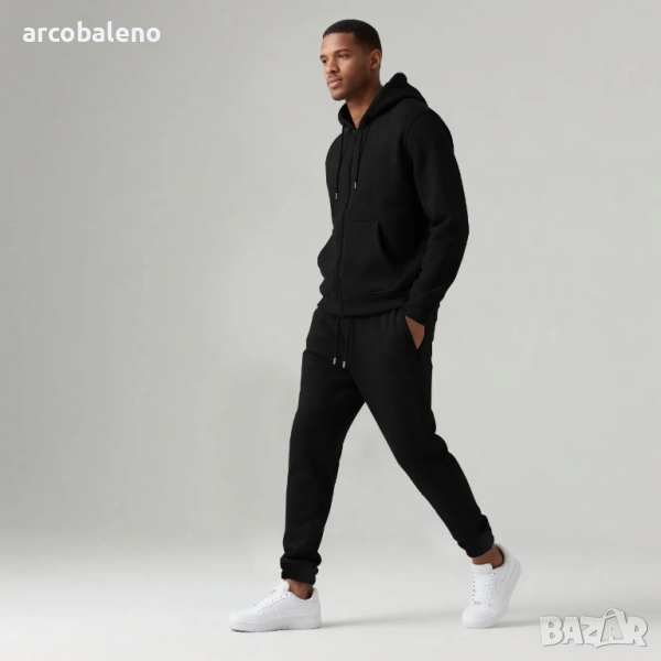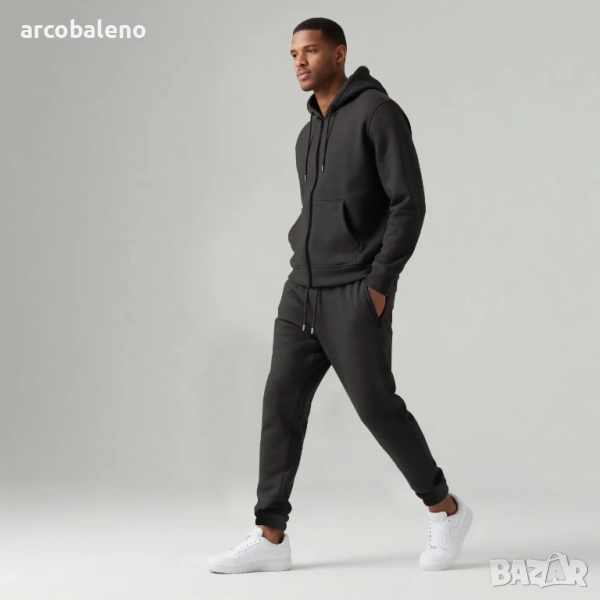 Мъжки есенно-зимен комплект от две части с качулка и дълъг ръкав с подплата от полар