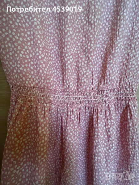 Детска лятна рокличка в красиво розово с малки цветя. Обличана няколко пъти и в перфектно състояние. На талията има стягащо коланче (снимка 2). Размер до 164см