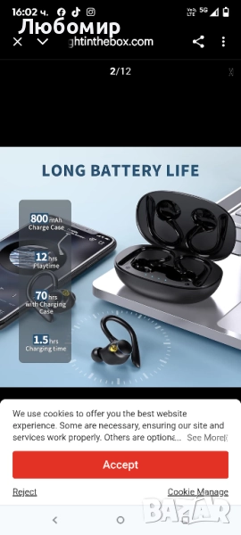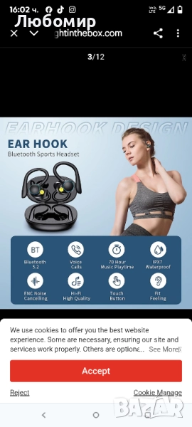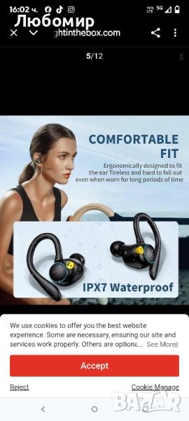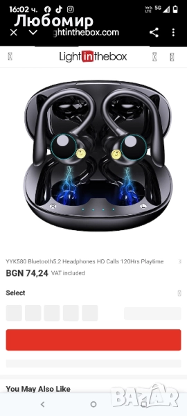 YYK580 Bluetooth5.2 слушалки HD разговори 120 часа възпроизвеждане безжични слушалки с калъф за зареждане безжични IPX7 водоустойчиви слушалки с тъч контрол и кукички за уши за спорт, бягане, работа, игри #