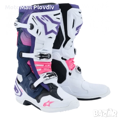 Мотокрос ботуши ALPINESTARS TECH 10 WHITE/VIOLET/NAVY/PINK