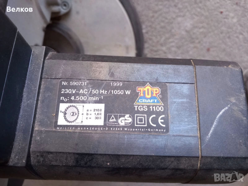 Мощност мотор – 1050W, скорост - 4 500 об/мин. Дискове размер до ф 210 мм. Машината е с поставен почти нов оригинален немски режещ диск, ф 210 мм. Наклон рязане-ъгъл - 0-45 градуса, регулируем.