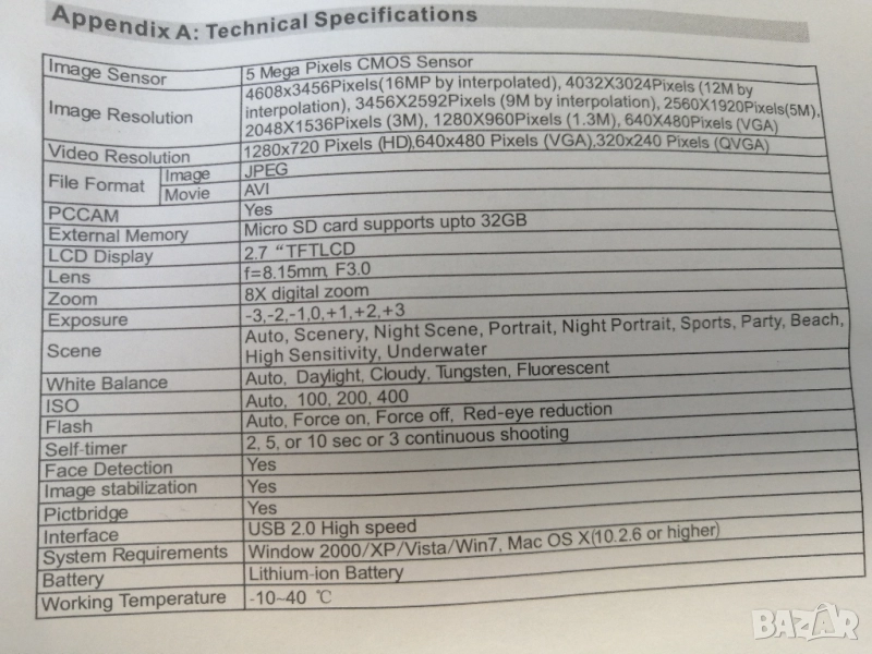 Водоустойчив фотоапарат /до 10 метра под вода/.