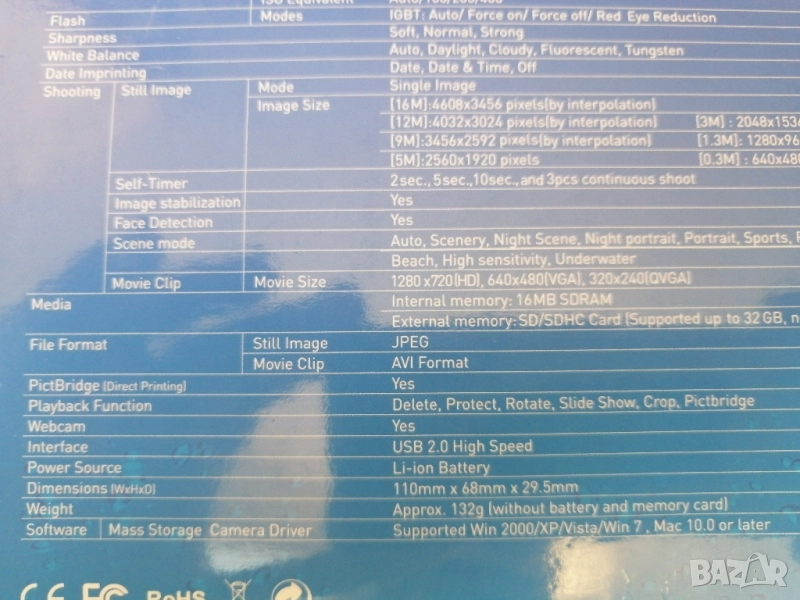 Има карта памет 2 GB, която побира над 400 снимки на максимална резолюция.