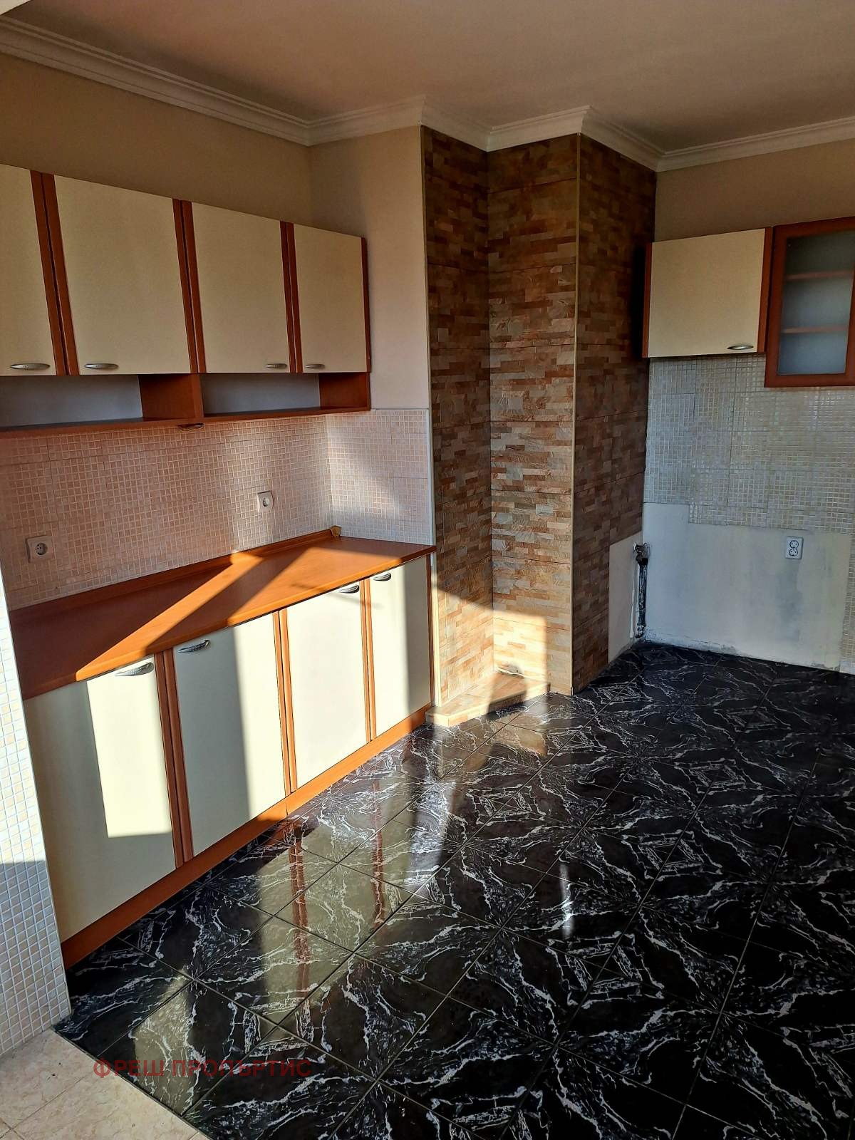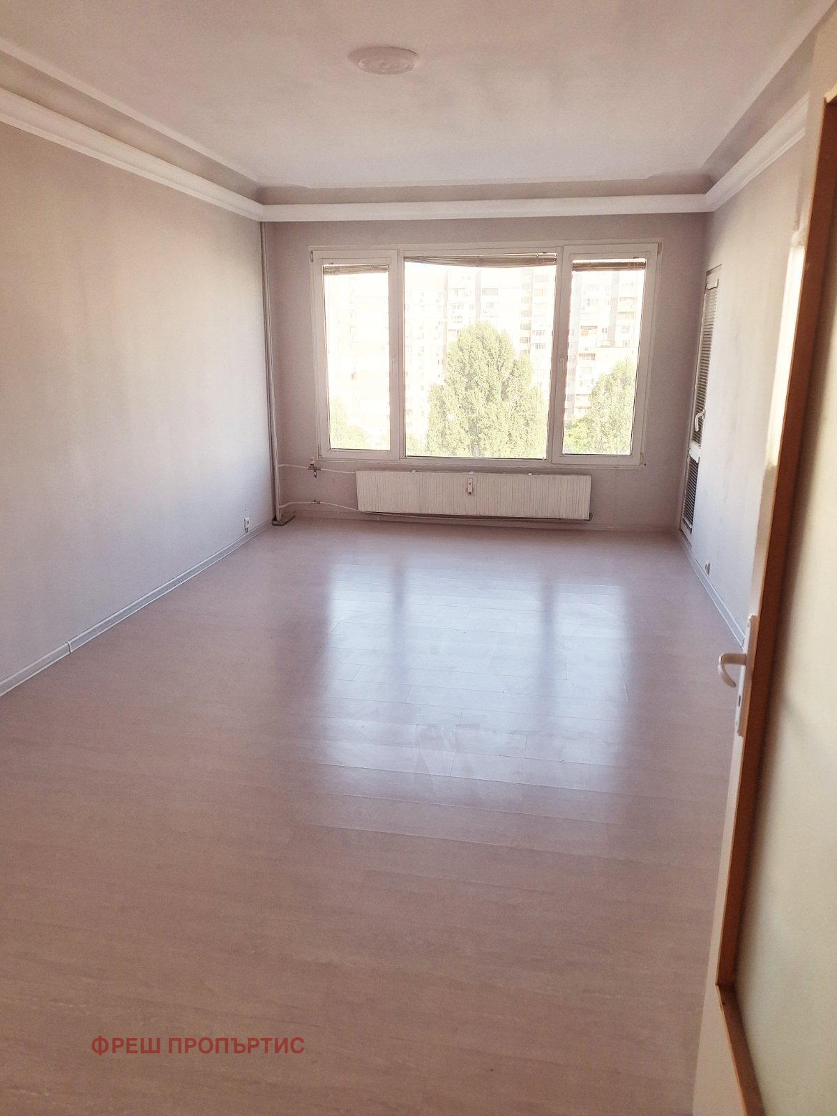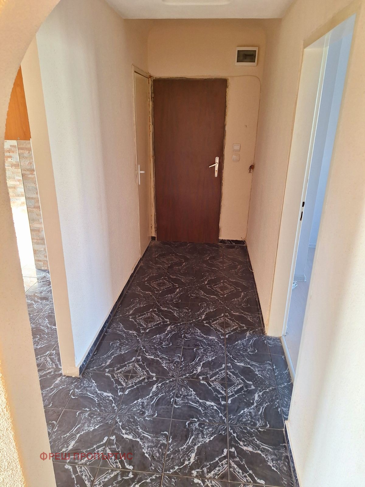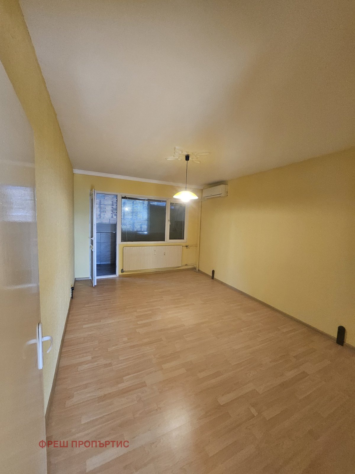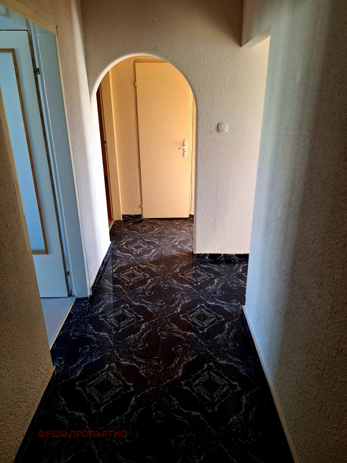Агенция 'Фреш Пропъртис' Ви предлага Тристаен. непреходен, изцяло вътрешен апартамент в панелен блок от 80-те години. Състои се от: коридор, просторен хол, голяма кухня с усвоен към нея балкон, две самостоятелни спални, баня с тоалетна, отделна тоалетна, балкон и прилежащо към апартамента мазе. По документи за собственост жилището е 88,4кв.м., в което не са включени тераси и мазето.