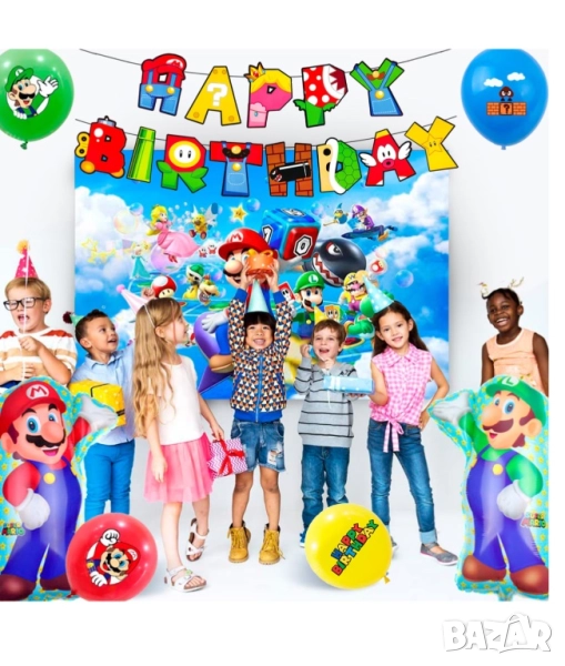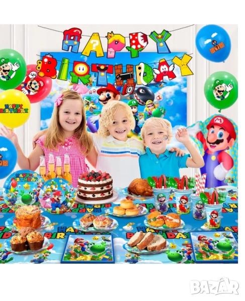 Комплект парти аксесоари детски рожден ден ,Super Mario, 177 части