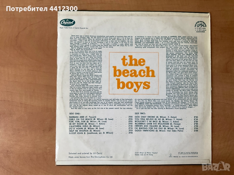 Здравейте, грамофонна плоча 12 инча The beach boys- the beach boys. Произведено в Чехословакия. Не нося отговорност за състоянието на плочите, не почиствам плочи, ако имате въпроси, може да ми звънете на посочения номер или да ми напишете съобщение. Отговарям след 18 часа, цените не се коментират, ако не се вземат повече от 10 плочи. Благодаря, че прегледахте обявата ми. Лек и спокоен ден!