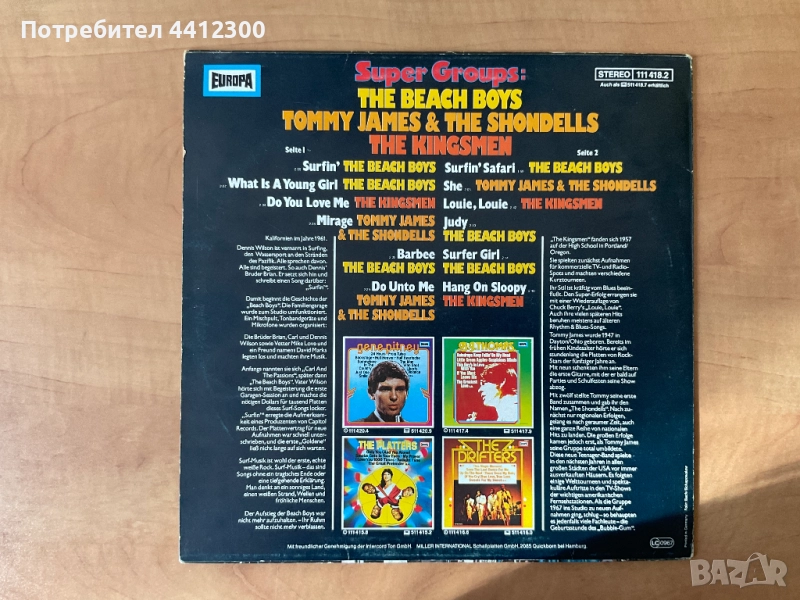 Здравейте, грамофонна плоча 12 инча The beach boys surfin super groups. Немско издание. Не нося отговорност за състоянието на плочите, не почиствам плочи, ако имате въпроси, може да ми звънете на посочения номер или да ми напишете съобщение. Отговарям след 18 часа, цените не се коментират, ако не се вземат повече от 10 плочи. Благодаря, че прегледахте обявата ми. Лек и спокоен ден!