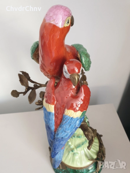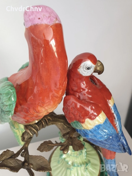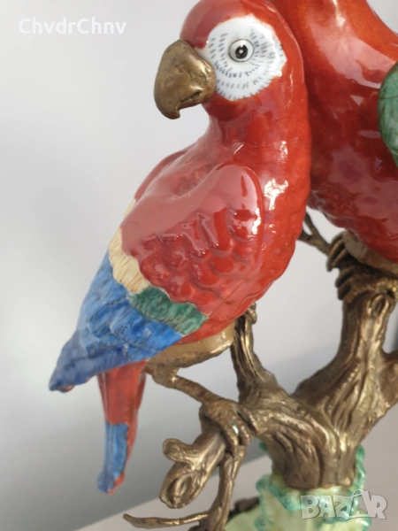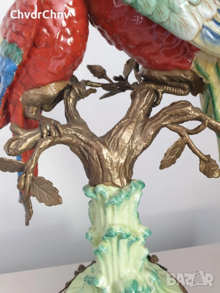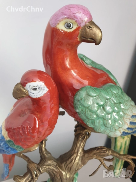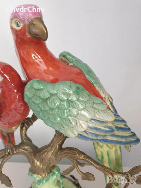 41см-3кг стара китайска порцеланова фигура с бронз/птици-папагали/Wong Lee 1895/стара статуетка/zz