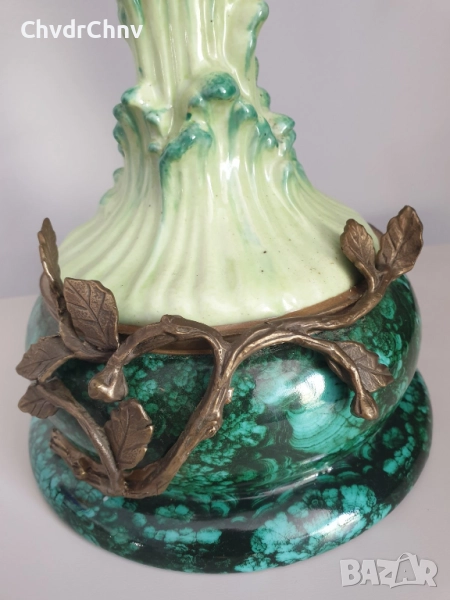 Височина 41 см, диаметър на основата 17 см, тежи около 3 кг, направена е от плътен порцелан (не е керамика) с елементи от бронз (клончета, листа, краката и човките на папагалите).