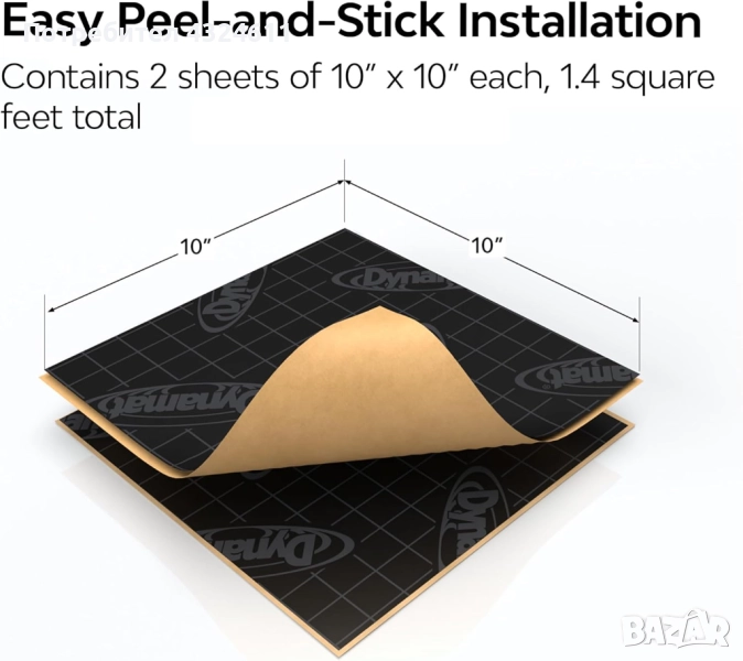 Технологията на Dynamat значително подобрява качеството на звука в автомобила, като елиминира паразитни вибрации, нежелани шумове и резонанси, които влияят негативно на аудио изживяването. Листовете са изработени от висококачествен материал с алуминиево фолио и патентован бутадиенов слой, който е устойчив на висока температура и влага. Самозалепващата им повърхност прави инсталацията лесна, дори и за непрофесионалисти.