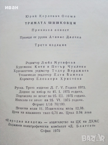 Тримата Шишковци - Юрий Олеша - 1975г. → Обява 51475678