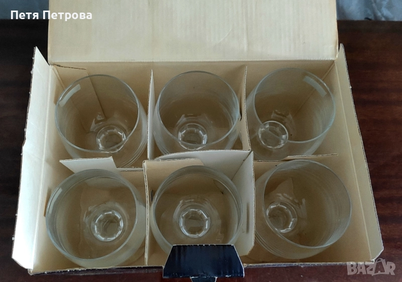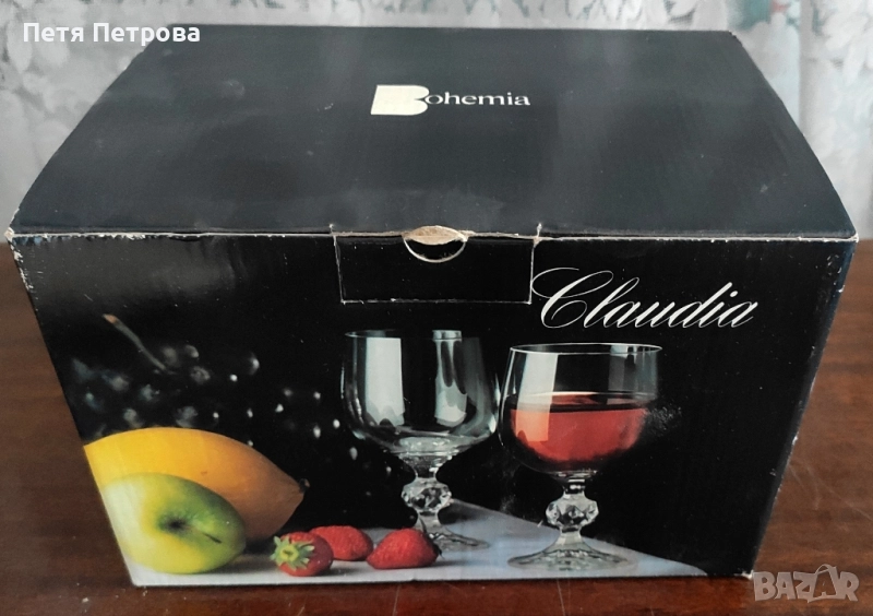 Кристални чаши Бохемиа от серията Клаудия (150мл). Шест броя чисто нови, неизползвани чаши, единствено кутията има следи от времето.