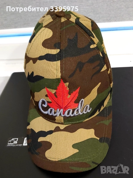 Стилна бейзболна шапка с бродерия Канада и кленов лист. Камуфлажен принт в цвят каки - идеален за дейности на открито, лов, риболов или просто за ежедневен стил. Универсален размер с регулиране.