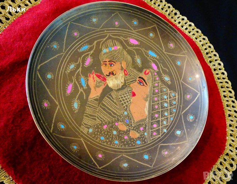 релефно гравирана и рисувана с изображение на император от епохата на Моголите,който