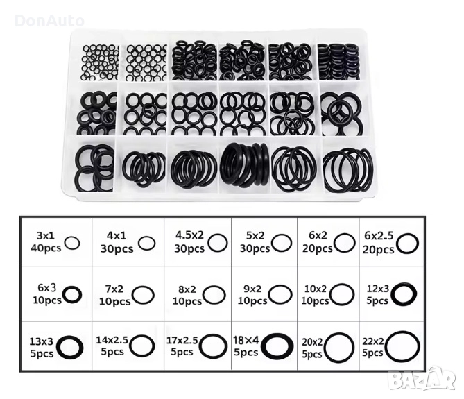 Практични комплекти от висококачествени О-пръстени, подредени в удобна пластмасова кутия. Подходящи за уплътняване на вода, въздух, масло и газ, осигурявайки надеждна защита срещу течове. Идеални за ремонт и поддръжка на водопроводни, автомобилни и индустриални системи.