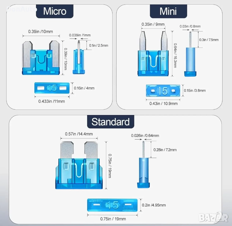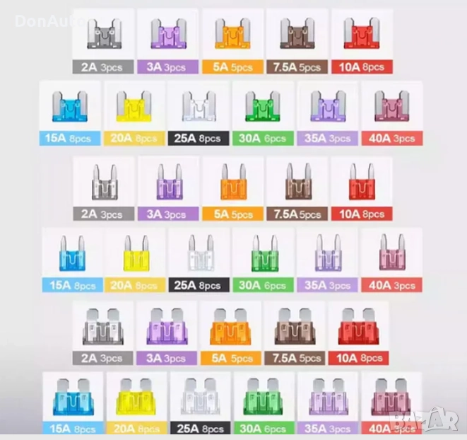 Ясно обозначен ампераж върху всеки предпазител