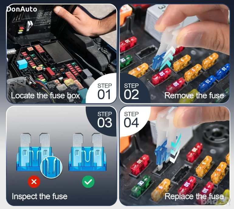 Надеждно и практично решение за всеки автомобил, камион, мотоциклет, кемпер или лодка. Комплектите съдържат най-често използваните видове и амперажи предпазители, подредени в удобна кутия за лесно съхранение и бърз достъп.
