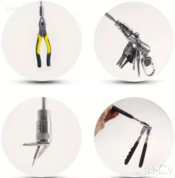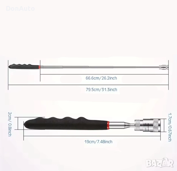 Практичен инструмент за вдигане на метални предмети от труднодостъпни места. Разширяемият телескопичен дизайн и вградената LED светлина правят работата по-лесна и безопасна. Подходящ за автосервизи, домакинства и механични работилници.