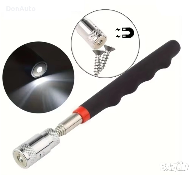 Телескопичен магнит с LED фенер – инструмент за сервизи и ремонти