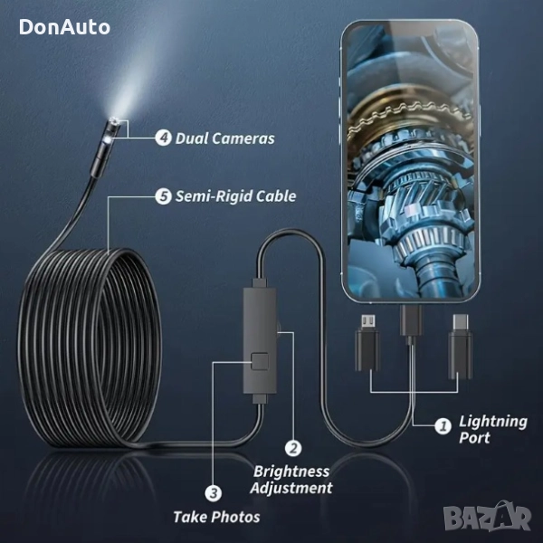 Практичен USB ендоскоп за Android смартфони, подходящ за инспекция на труднодостъпни места – тръби, канали, двигатели, мебели, електроинсталации и др. Камерата е с компактен диаметър 5.5 мм, водоустойчива конструкция и LED осветление за ясна картина дори в пълна тъмнина. Гъвкавият кабел позволява лесно маневриране в тесни пространства.
