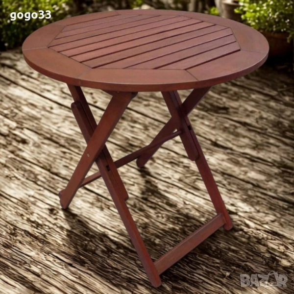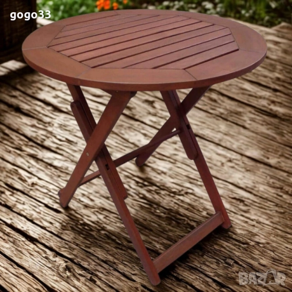 Маса сгъваема Muhler Meranti - Ø70xH74cm, дърво Цена: 145 лева Размери: Ø70xH74 см; Материал: Дърво Meranti/Shorea с висока издръжливост и стабилност; Обработка: Естествено тиково масло; Цвят на дървото: От средно червено до наситено червено-кафяво; Функция за сгъване: За спестяване на място при съхранение.