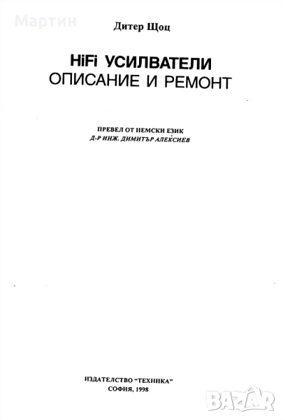 HiFi усилватели. Описание и ремонт, Дитер Щоц, 1998, снимка 1 - Специализирана литература - 51477606 HiFi усилватели. Описание и ремонт, Дитер Щоц, 1998, снимка 2 - Специализирана литература - 51477606 1/2